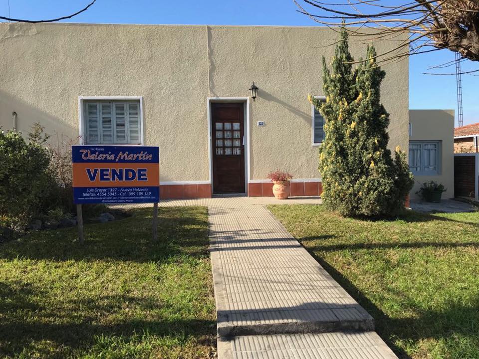En venta. Nueva Helvecia. Cómoda casa en muy buena ubicación. Cuenta con 3 dormitorios, living con estufa a leña, cocina comedor, baño, garage con parrillero, amplio terreno parquizado, galpón Precio U$S 70.000